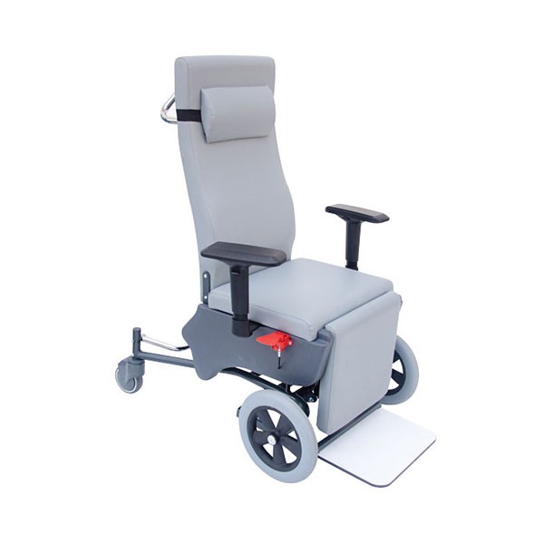 Koltuk, hastanın güvenliği için emniyet kemeri ile donatılmıştır. Bu kemer, taşıma sırasında hastanın kaymasını ve düşmesini önler. Ayrıca, koltuk üzerindeki tutma kolları sağlık personelinin hastayı rahatça kavrayıp yönlendirmesine yardımcı olur.