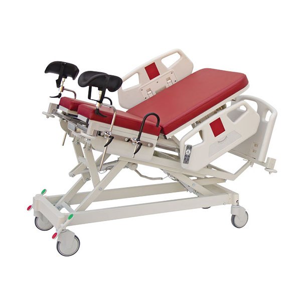 Motorlu doğum masası, elektrikli motorları sayesinde farklı pozisyonlara kolaylıkla getirilebilir.